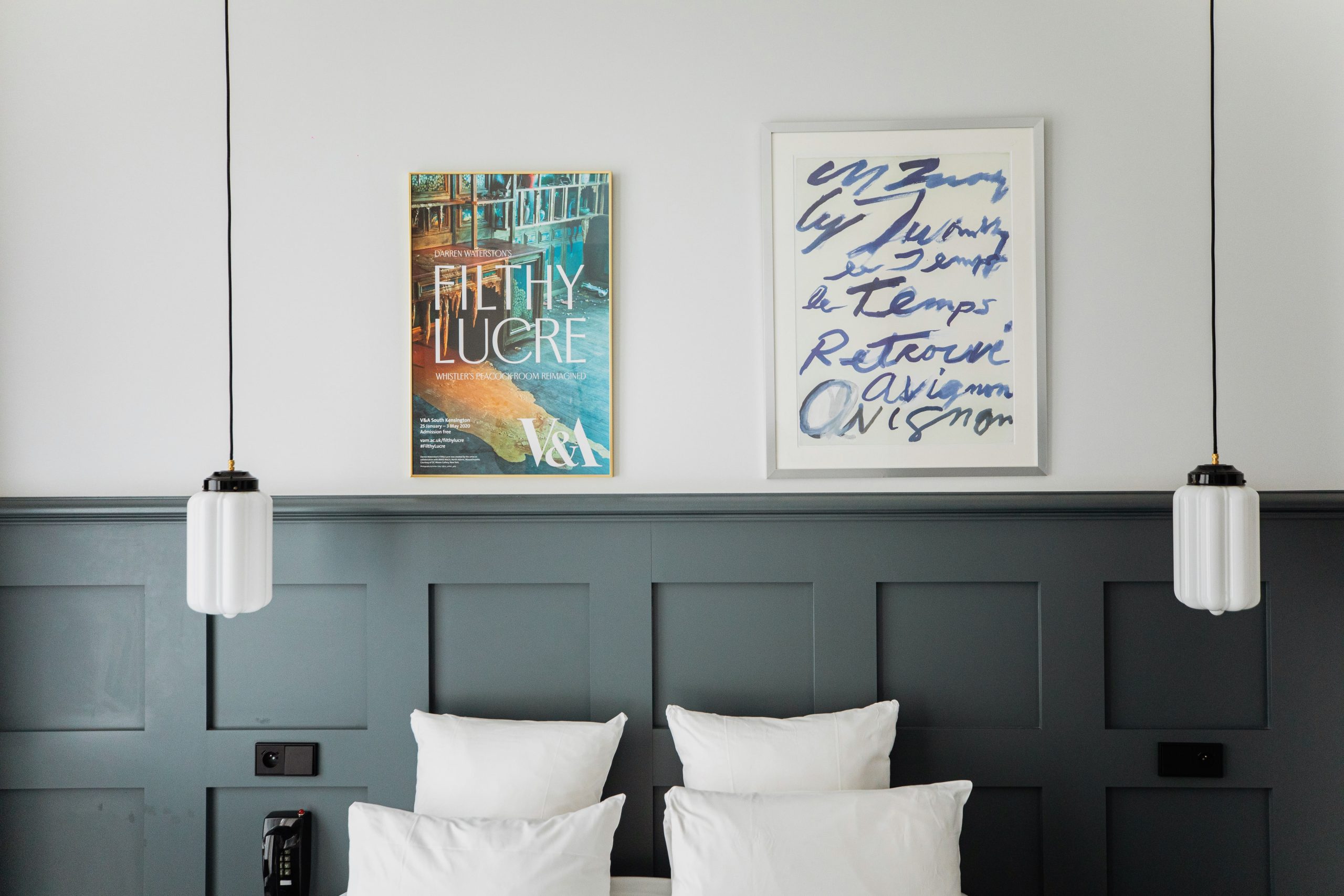El mobiliario de madera incluye una bonita mesa donde uno puede trabajar, un elegante armario y una estantería con nuestra selección de libros de la colección blanca de Gallimard. Las sillas Tulip de Saarinen de la “École Centrale Paris dan un toque intemporal. Las chimeneas nos recuerdan el espíritu del hotel a principios del siglo pasado.